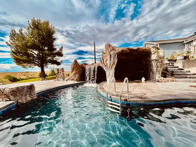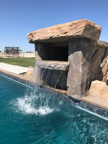 Custom rock formations, decorative carving, and sculpted concrete features.